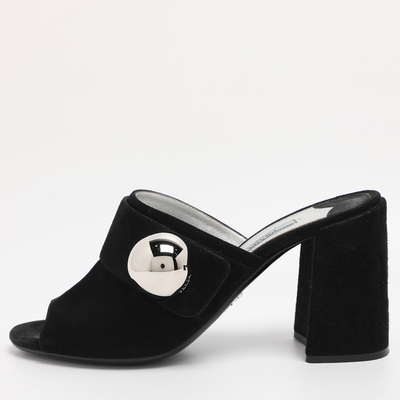 Prada Black Suede Block Heel Mule Sandals Size 38 1215468 (чёрный, lpn30956888)