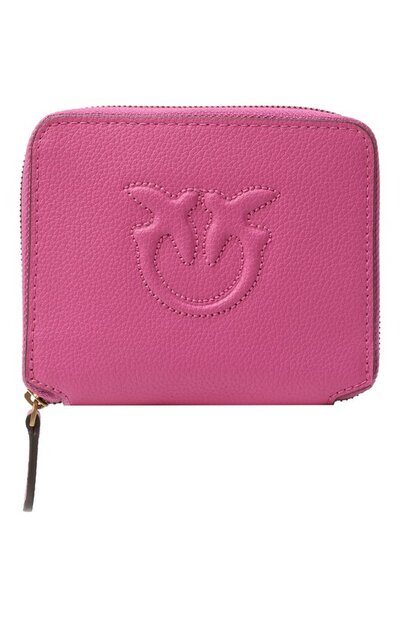 Кошелек с круговой молнией выполнили из зернистой кожи. Аксессуар с рельефным мотивом Love Birds спереди дополнили внутри шестью слотами для карт, отделением для купюр и карманом для монет, закрывающимся клапаном с кнопкой.
