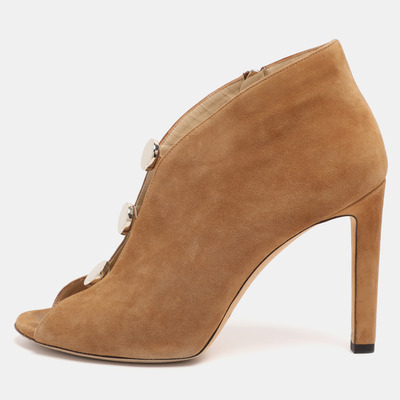 Jimmy Choo’s Lorna booties are crafted in rich brown suede with graceful cut out details. Set on a slim heel with side buckle accents, they embody contemporary femininity, making them an elegant choice for both day and night wear.