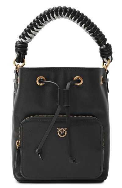 Сумку Cargo Bucket со съемными плетеной ручкой и плечевым ремнем выполнили из гладкой кожи. Аксессуар, затягивающийся кулиской, дополнили внутренним карманом с застежкой и внешним отделением на молнии, декорированным фирменной пряжкой Love Birds.