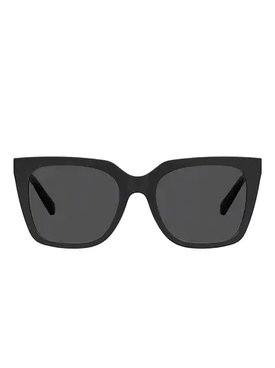 black square frame logo detail heart embellishment tinted grey lenses These glasses come with a protective case.