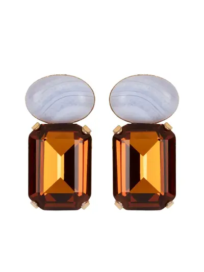 gold-tone rectangular crystal embellishment oval embellishment post-back fastening These earrings come as a pair. Normal everyday use and external agents may reduce the lustre of gemstones and gold surfaces. To maintain, use specific, non-abrasive products specially meant for cleaning jewellery.