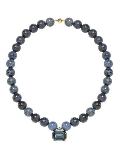 blue lapis lazuli stone beads rectangular gem gold-tone hardware clasp fastening Normal everyday use and external agents may reduce the lustre of gemstones and gold surfaces. To maintain, use specific, non-abrasive products specially meant for cleaning jewellery.