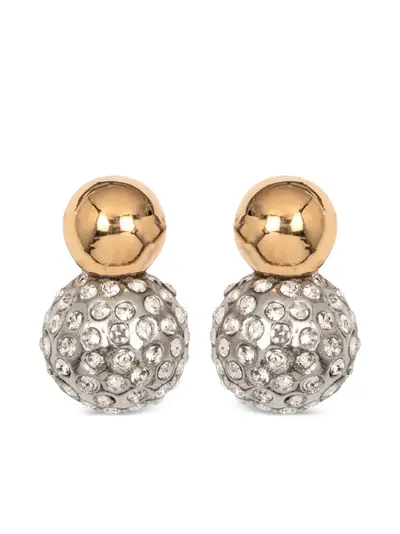 gold-tone crystal embellishment sphere design plated finish for pierced ears post-back fastening These earrings come as a pair.