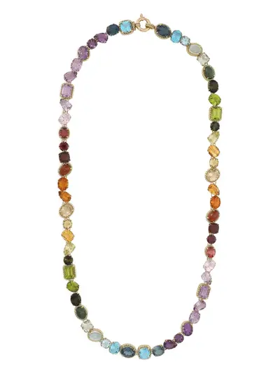 gold-tone/multicolour 18K yellow gold gemstone embellishment bead chain spring ring fastening polished finish Normal everyday use and external agents may reduce the lustre of gemstones and gold surfaces. To maintain, use specific, non-abrasive products specially meant for cleaning jewellery.
