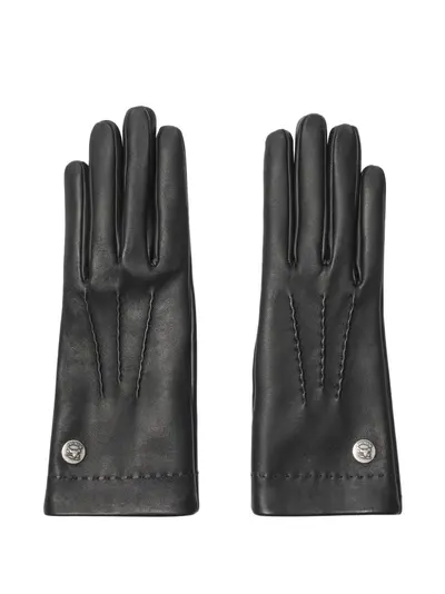 black lambskin leather metal stud antique finish equestrian knight design topstitching detail