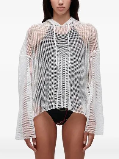 off-white mesh paneling hooded neckline long sleeves drawstring hood