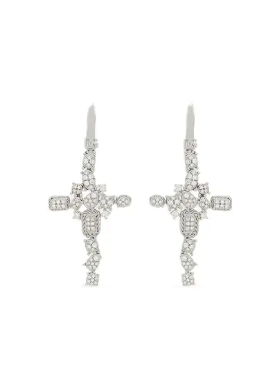 silver-tone 18K white gold pavé-set round-cut diamonds drop design polished finish These earrings come as a pair. Normal everyday use and external agents may reduce the lustre of gemstones and gold surfaces. To maintain, use specific, non-abrasive products specially meant for cleaning jewellery.
