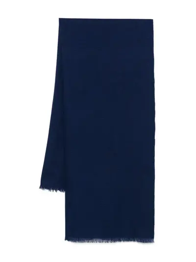 royal blue Prince of Wales-check pattern frayed edge wool rectangular shape