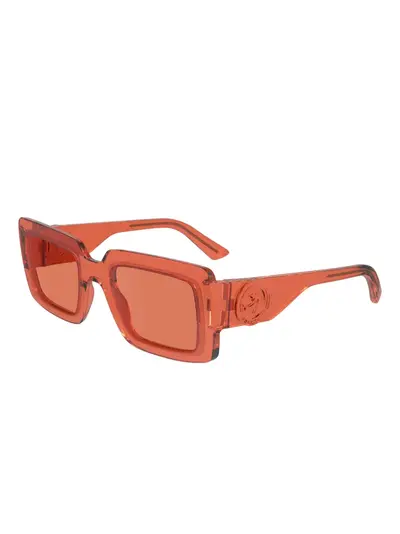orange square frame logo detail moulded nose pads straight arms curved tips These glasses come with a protective case.