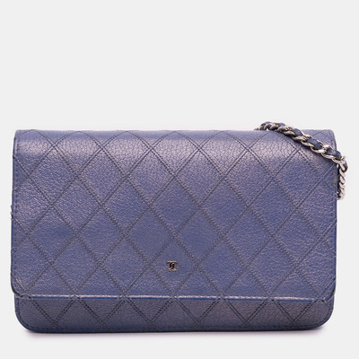 Chanel Blue CC Calfskin Double Stitched Wallet on Chain 1215965 (голубой, lpn30970755)