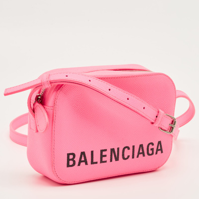 Balenciaga compresses bold sensibility into an XS Ville camera bag in neon pink leather. Compact and high impact, it conjures street style flashes, after dark gigs and days when minimal effort meets maximal statement. A crossbody that turns a functional carry into a shot of confidence.