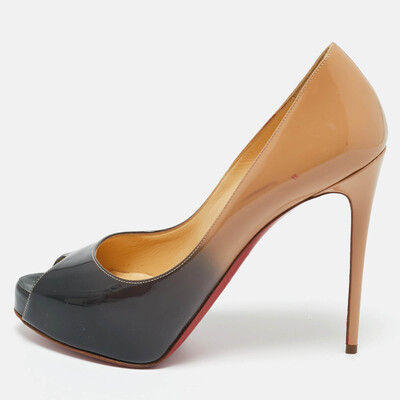 Christian Louboutin Beige/Black Patent Leather Very Prive Platform Pumps Size 37.5 1218097 (бежевый, lpn30970976)