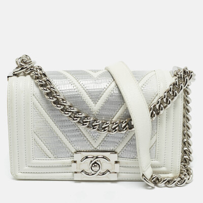 Rarity is its own kind of luxury, and few pieces capture that truth like this Chanel Chevron Boy flap bag. Crafted from exotic lizard and supple leather, it features Chanel’s signature chain and leather strap, a front clasp engraved with the iconic CC logo, and a compact silhouette perfect for carrying essentials. Collectors know the Boy Bag is more than a fashion statement—it’s one of the house’s most consistent investment pieces.