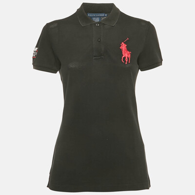 Ralph Lauren Black Logo Embroidered Cotton Polo T-Shirt M 1218774 (чёрный, lpn30973533)