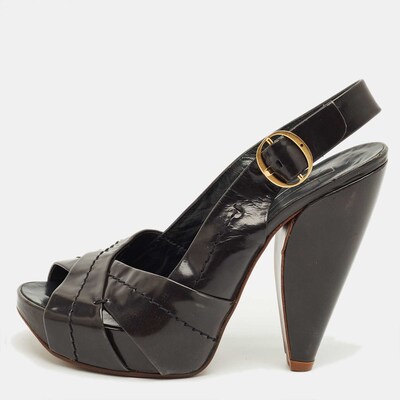 Crossed straps in black leather frame Marc Jacobs’ slingback sandal into an understated summer heel. It evokes city lunches and soft linen, a piece that offers height without losing balance.