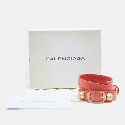 Balenciaga Studded Arena Leather Gold Tone Triple Tour Bracelet 1217412 (lpn30973813)