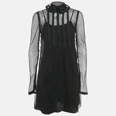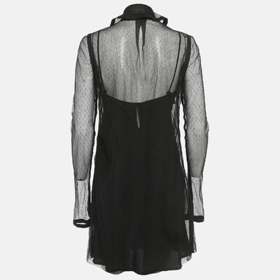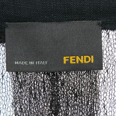 This Fendi mini dress combines sheer black mesh with a sleeveless lining for a balance of edge and ease. The long sleeves and fitted cut make it versatile for day or night.