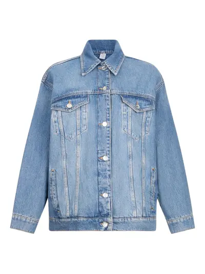 blue cotton denim shirt collar removable faux-fur detailing buttoned flap breast pockets buttoned cuffs button closure side pockets