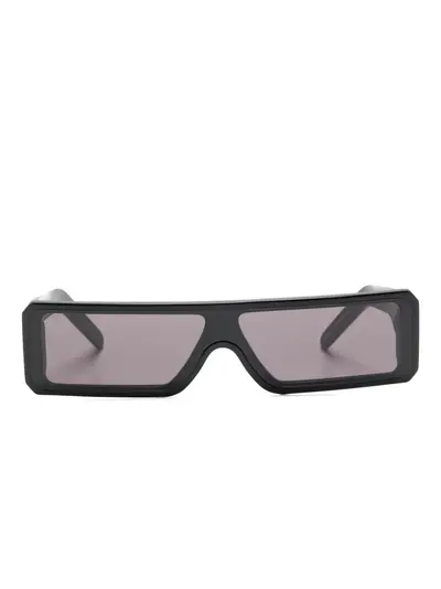 black rectangle frame tinted lens sculpted arms These glasses come with a protective case.