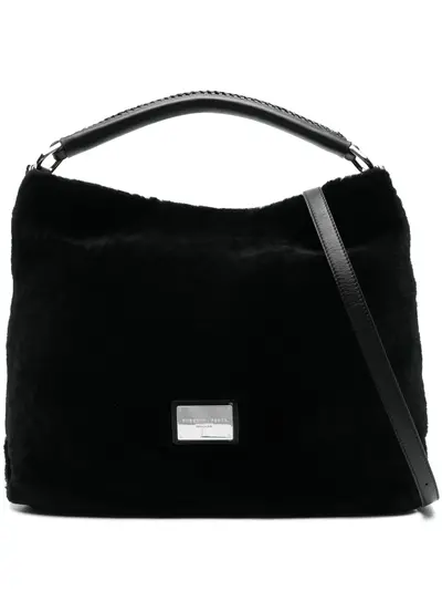 black shearling logo plaque single top handle adjustable detachable shoulder strap magnetic fastening main compartment internal zip-fastening pocket internal logo patch full lining silver-tone hardware