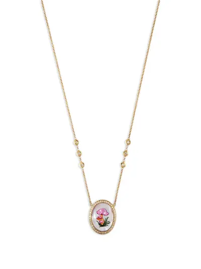 gold-tone 14kt yellow gold pavé-setting round-cut diamonds mother of pearl pendant mushroom motif Normal everyday use and external agents may reduce the lustre of gemstones and gold surfaces. To maintain, use specific, non-abrasive products specially meant for cleaning jewellery.