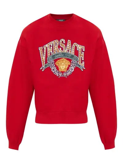 red Medusa appliqué round neck long sleeves ribbed hem ribbed cuffs