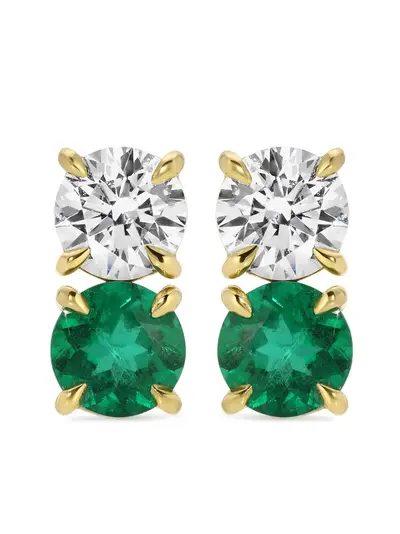 gold-tone 18K yellow gold round brilliant-cut emeralds round brilliant-cut diamonds prong setting high polish finish These earrings come as a pair. Normal everyday use and external agents may reduce the lustre of gemstones and gold surfaces. To maintain, use specific, non-abrasive products specially meant for cleaning jewellery.