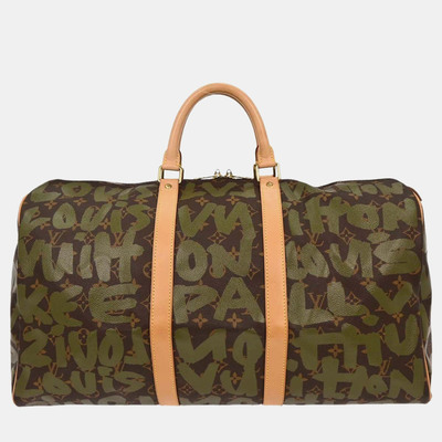 Louis Vuitton Khaki Monogram Graffiti Keepall 50 Duffle Bag 1218675 (коричневый, lpn30978895)