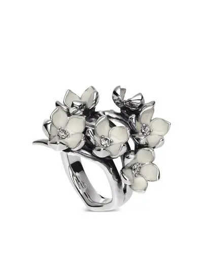silver-tone floral motif round-cut diamond embellishment branch detail polished finish Normal everyday use and external agents may reduce the lustre of gemstones and gold surfaces. To maintain, use specific, non-abrasive products specially meant for cleaning jewellery.