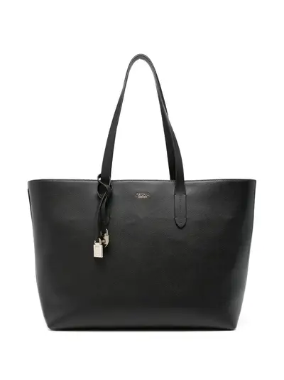 black leather two top handles padlock detailing zip fastening internal slip pocket