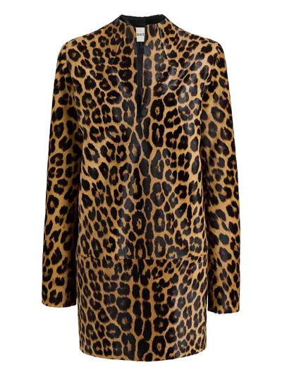 brown calf leather leopard print V-neck long sleeves