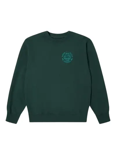 green graphic print round neck long sleeves ribbed hem ribbed cuffs