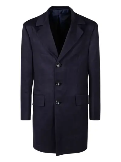 navy blue cashmere fabric single breasted button fastening flap pockets rear vent