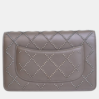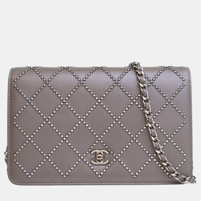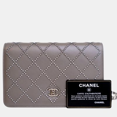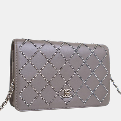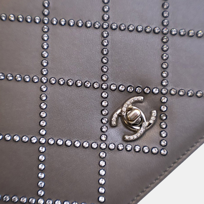 Chanel Grey CC Studded Calfskin Crystal Wallet On Chain 1219011 (lpn30981175)
