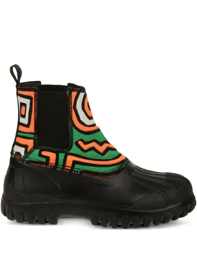 black/multicolor elasticated side panels round toe branded insole pull-tab at the heel