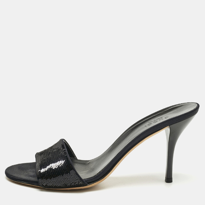Gucci Black Sequins Open Toe Slide Sandals Size 38.5 1219260 - 1