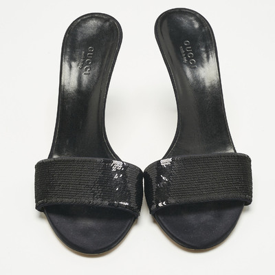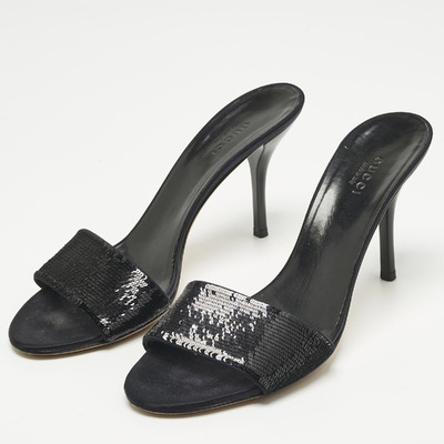 Gucci Black Sequins Open Toe Slide Sandals Size 38.5 1219260 (чёрный, lpn30982910)
