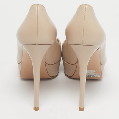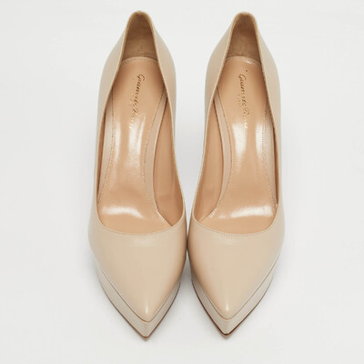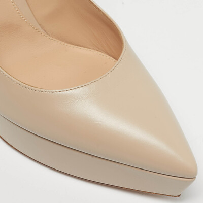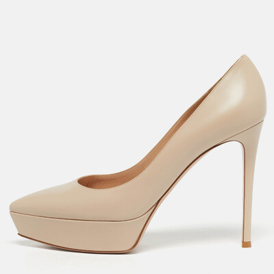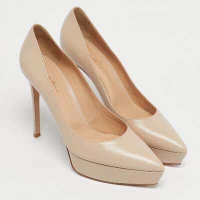 Beige leather and a sculpted platform define Gianvito Rossi’s Dahsha pumps. The brand’s clean upper and dramatic heel construction show how Italian craftsmanship can turn a neutral pump into a standout silhouette. These Gianvito Rossi platform pumps deliver both height and signature style for searchers of luxury heels.