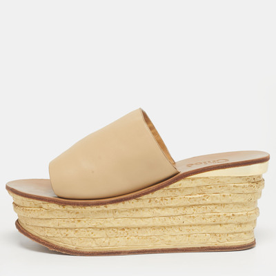 Chloe Beige Leather Wedge Slide Sandals Size 36 1219126 - 1