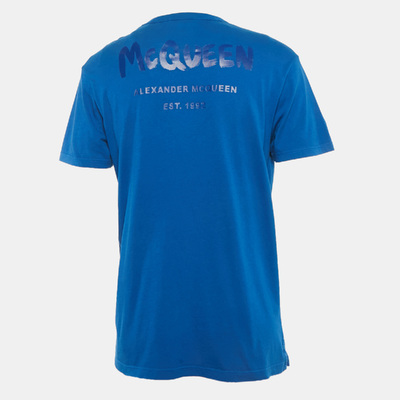 Alexander McQueen’s blue cotton T shirt is printed with a bold logo at the front. Clean edges and a soft handle make it a versatile base layer with a graphic edge. This style performs well for searches on Alexander McQueen logo T shirts.