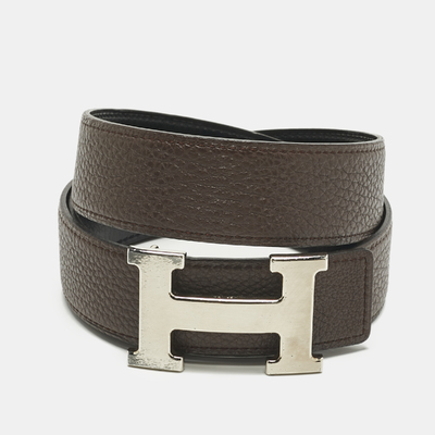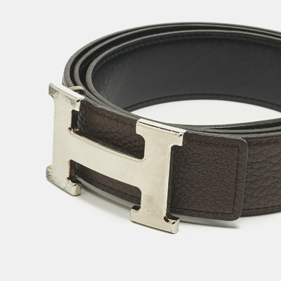 Hermès showcases timeless versatility with this reversible belt, crafted from Chocolat Togo leather on one side and Noir Box leather on the other. Finished with a brushed H buckle, it’s an understated piece that adapts effortlessly to both formal and casual ensembles.