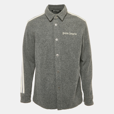 Palm Angels Grey Wool Blend Band Detail Track Shirt M 1218439 (lpn30983224)