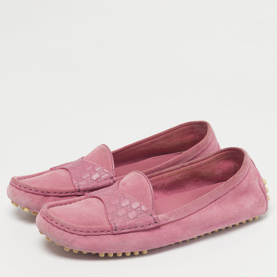 The soft blush of velvety suede meets pink Microguccissima leather in these Gucci loafers. The kind of shoes you slip into when you want comfort with luxe touch.