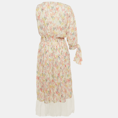 Elisabetta Franchi Multicolor Heart Print Crepe One Shoulder Midi Dress M 1216900 - 1