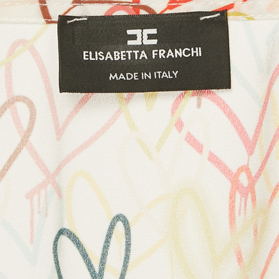 This midi dress from Elisabetta Franchi is cut from multicolour crepe with a heart print. The one shoulder design reflects the brand’s feminine aesthetic, turning a simple silhouette into an eye catching occasion piece.