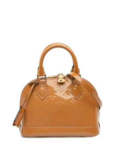 vernis leather body rolled leather handles detachable flat leather strap top zip around closure clochette interior slip pocket brown Serial Number: MI0163 Inclusions: charm, padlock, key, shoulder strap. Condition: EXCELLENT. This previously owned item is in near-perfect condition with no signs of damage or use. Please refer to the photos on this product page for a detailed view of the item, including any damages declared.