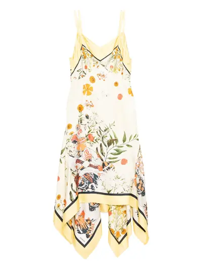 light yellow concealed side hook and zip fastening adjustable shoulder straps asymmetric hem