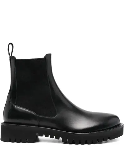 black calf leather elasticated side panels pattern detail round toe chunky sole
