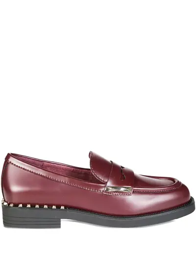 burgundy leather gold-tone hardware studded detail slip-on style flat sole